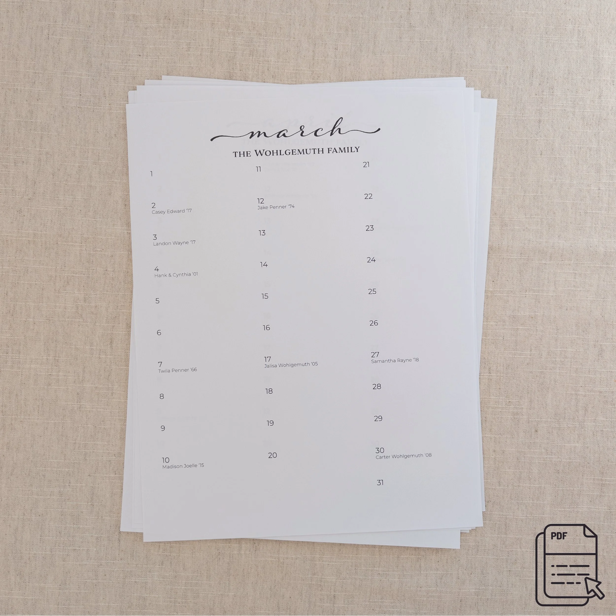 Categories: All Birthday Calendars Birthday Calendar Resources Digital Downloads Planners Wall Calendars Wedding Book All | Birthday Calendars | Birthday Calendar Resources | Digital Downloads | Planners | Wall Calendars | Wedding Book | WEDDING BOOK PAGES - customizable pdf from $50.00 PERPETUAL CALENDAR - birthday calendar $95.00 LINE ART CITIES - printable calendar $6.00 SILHOUETTE INK CITIES - printable calendar $6.00 HABIT TRACKER - printable pdf $3.00 FLOWER FIELDS - wall calendar $35.97 GOD OF HOPE - wall calendar $35.97 FAITH AND FLOWERS - wall calendar $35.97 ROCK OF AGES - wall calendar $35.97 BOTANY & VERSE - wall calendar $35.97 PSALM 23 - wall calendar $35.97 PRAISE GOD - wall calendar $35.97 SUMMER GRACE - narrow wall calendar $34.97 NATURE'S GRACE - narrow wall calendar $34.97 FRENCH NATURE'S GRACE - narrow wall calendar $34.97 FRENCH SUMMER GRACE - narrow wall calendar $34.97 FLOWER FIELDS - birthday calendar from $14.75 GOD OF HOPE - birthday calendar from $14.75 GRASSLANDS - birthday calendar from $14.75 FAITH AND FLOWERS - birthday calendar from $14.75 ROCK OF AGES - birthday calendar from $14.75 THE EARTH IS THE LORD'S - birthday calendar from $14.75 BOTANY & VERSE - birthday calendar from $14.75 PSALM 23 - birthday calendar from $14.75 THE SCENIC ROUTE - birthday calendar from $14.75 AROUND THE WORLD - birthday calendar from $14.75 COLOR CODING + HIGHLIGHT from $22.00 CUSTOM REPEATING LISTS $18.00 ENTER CALENDAR INFORMATION $55.00 CALENDAR STYLES $0.00 GROUP INDEX or FAMILY TREE $18.00 RECORD BOOK from $36.00 TEACHER PLANNER from $48.00